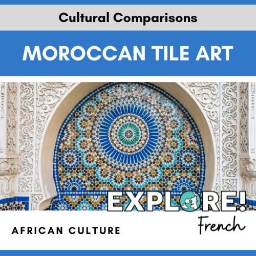 Mosaics: Use squares of paper or borrow pattern blocks from the math department to replicate mosaics from the target culture. Or, check out my low-prep lesson on Moroccan mosaics (which connects to French, Spanish, or Arabic classes!)